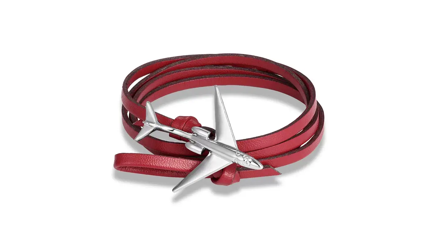 دستبند های طرح هواپیما، آن دسته از زیورآلات هستند که به مچ دست بسته میشوند و یکی از محبوبترین شکل های زیورآلات هواپیما بودهاست. به عنوان مثال دستبند چرم طرح هواپیما که هواپیمای فلزی مرکز آن از جنس استیل ساختهشده؛ یکی از پرفروشترین و شیکترین انواع جواهرات و اکسسوری هواپیما در فروشگاه اینترنتی هما ایر شاپ است.