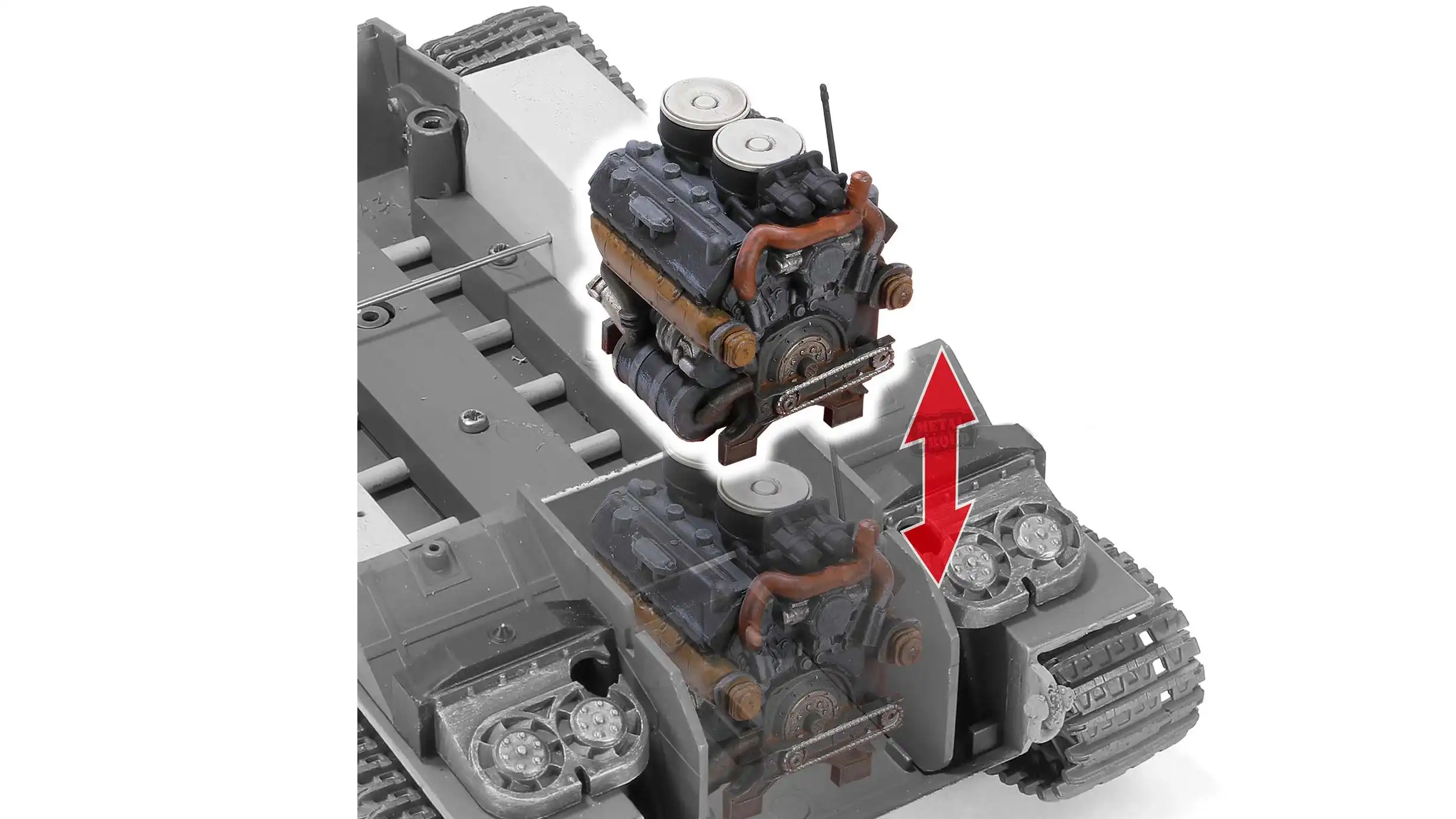 - اکثر قطعات این ماکت مانند چرخ ها,زنجیر چرخ ها,دربها و لوله توپ متحرک میباشد و همچین موتور این تانک قابلیت جداسازی دارد.