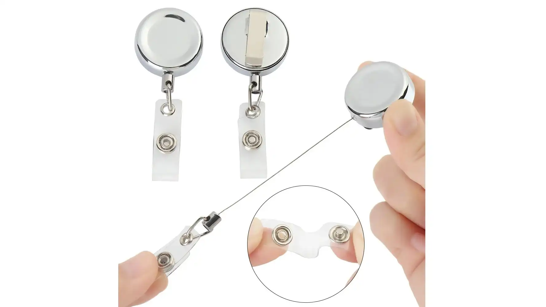 قرقره آویز کارت برای آویزان کردن انواع جاکارتی روی لباس طراحی شده است. مدل استیل این محصول با کیفیت بالا و مکانیزم جمعشوندۀ خودکار عرضه میشود؛ بهطوری که با کشیدن سیم تا حدود ۵۰ سانتیمتر، کارت بهراحتی در دسترس قرار میگیرد و پس از رها کردن، بهصورت خودکار جمع میشود.