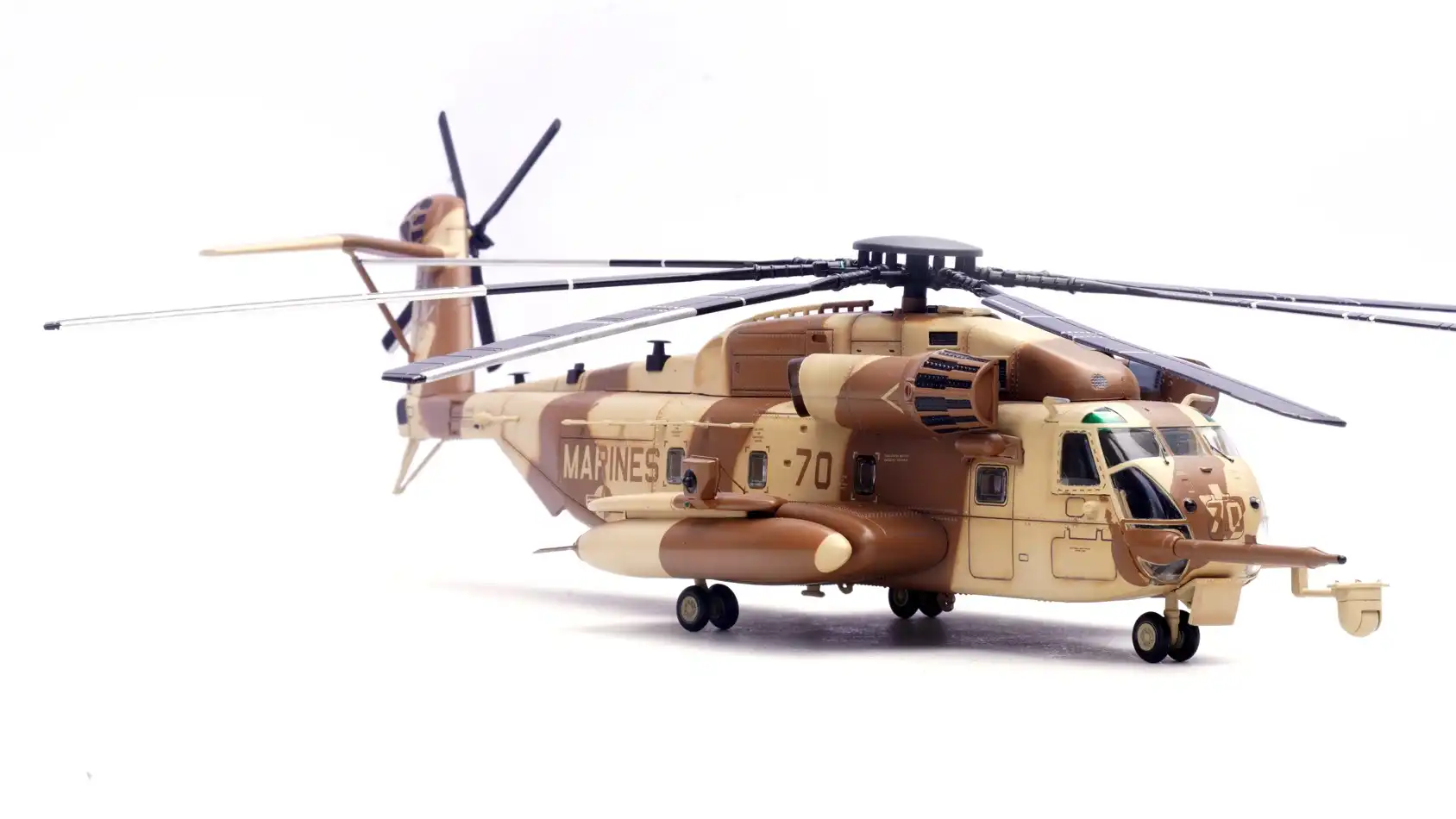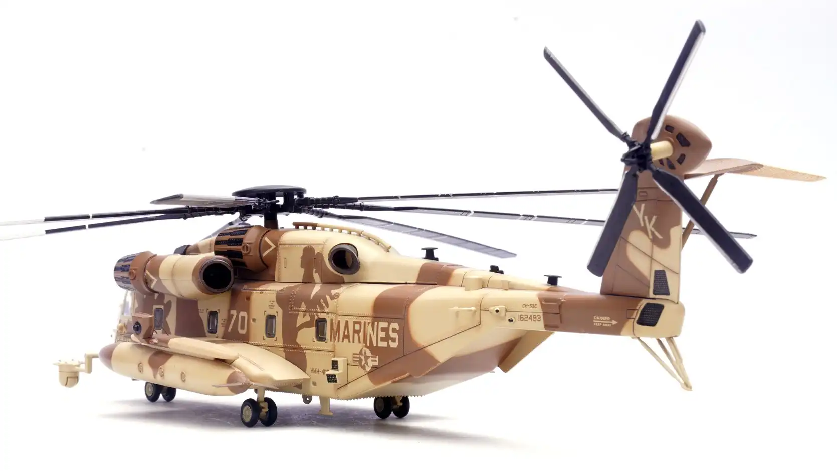 این ماکت در مقیاس 1:72 و بهصورت Die-cast فلز و پلاستیک توسط کمپانی Panzerkampf تولید شده است. مدل با تمرکز بر بازسازی صحیح فرم بدنه، تناسب ابعادی، رنگآمیزی عملیاتی و جزئیات واقعی اسکادرانی ساخته شده و نمایانگر یک نمونه کاملاً عملیاتی از CH-53E در دوران جنگ خلیج فارس است. این ماکت انتخابی دقیق برای کلکسیونرهای نظامی، علاقهمندان تاریخ هوانوردی و دیوراماهای عملیاتی مدرن بهشمار میآید.