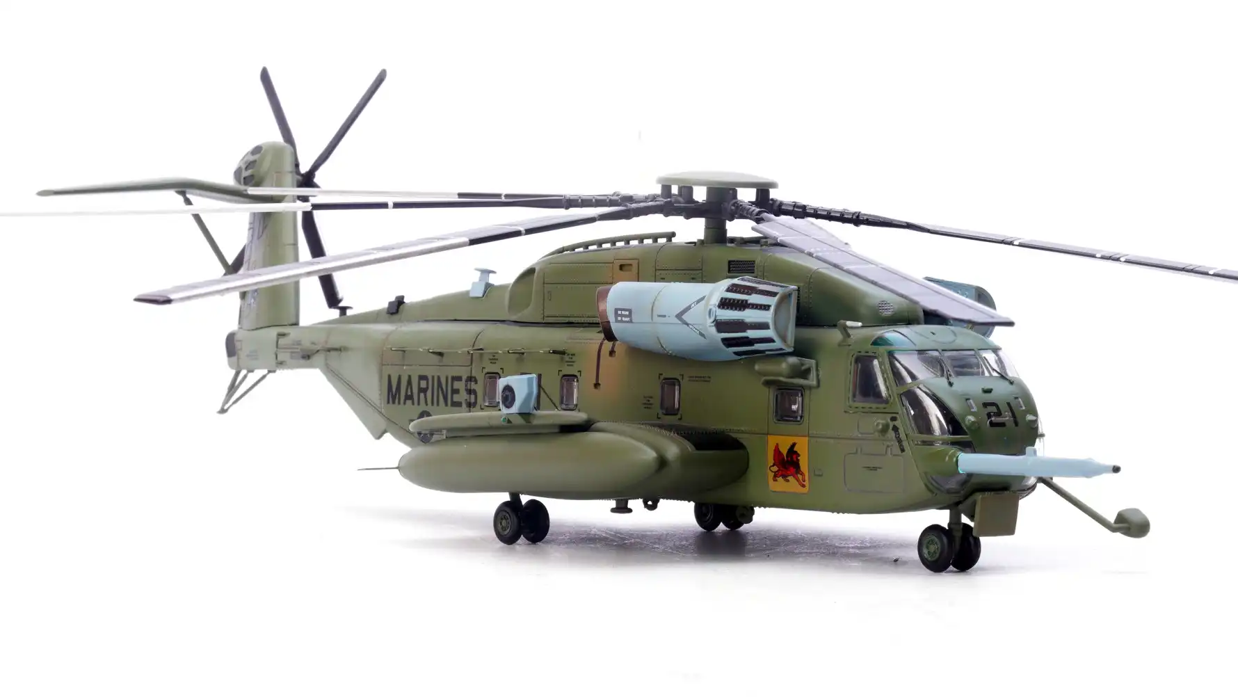 این ماکت در مقیاس 1:72 و به‌صورت Die-cast فلز و پلاستیک توسط کمپانی Panzerkampf تولید شده است. مدل با تمرکز بر بازسازی صحیح فرم بدنه، تناسب ابعادی، رنگ‌آمیزی عملیاتی و جزئیات واقعی اسکادرانی ساخته شده و نمایانگر یک نمونه کاملاً عملیاتی از CH-53E در دوران جنگ خلیج فارس است. این ماکت انتخابی دقیق برای کلکسیونرهای نظامی، علاقه‌مندان تاریخ هوانوردی و دیوراماهای عملیاتی مدرن به‌شمار می‌آید.